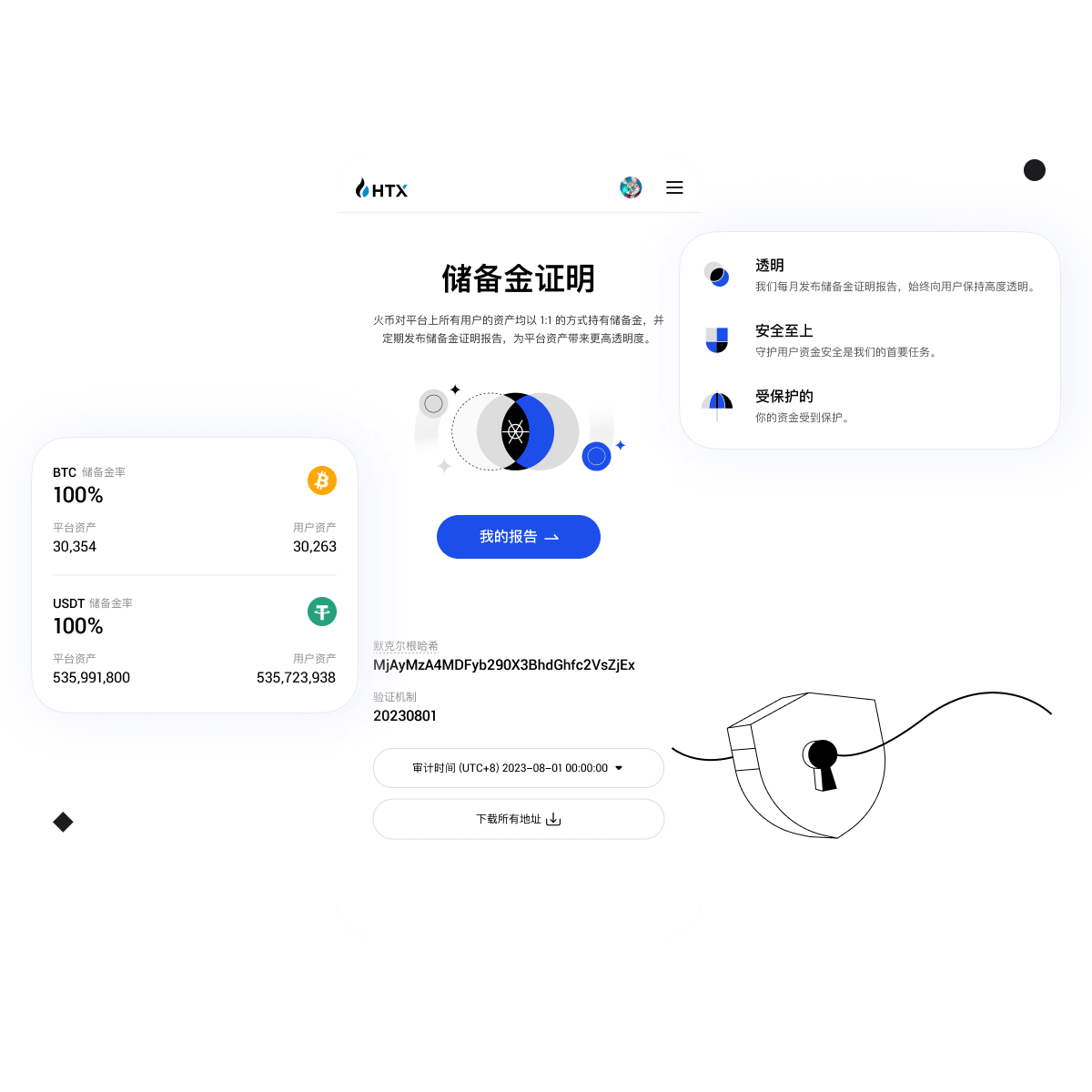 我们以1:1的方式持有储备金,并定期发布储备金证明报告